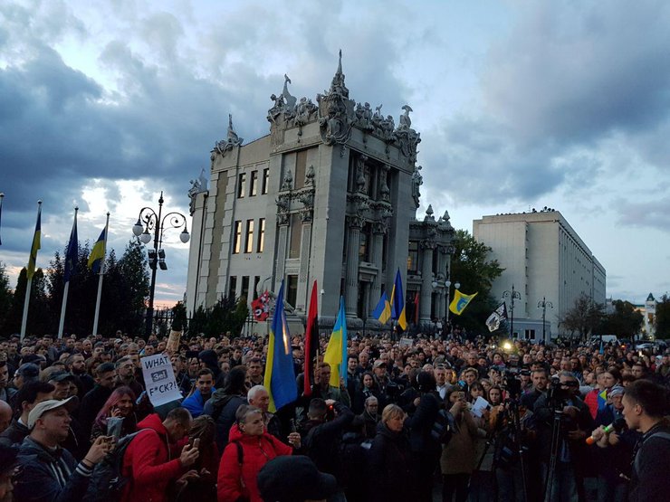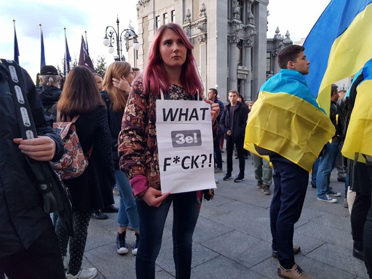 Под Офисом Президента проходит акция протеста против подписания Украиной "формулы Штайнмайера".