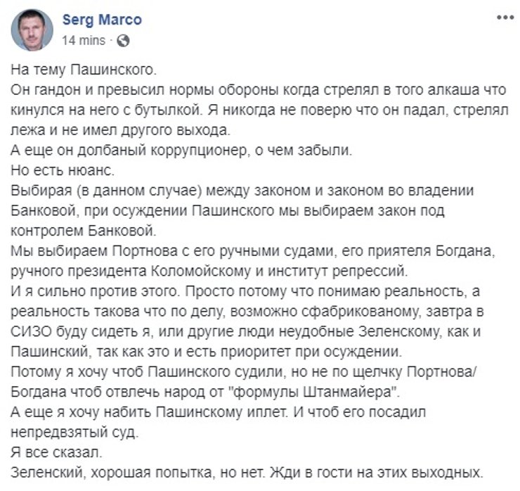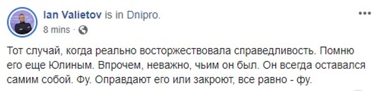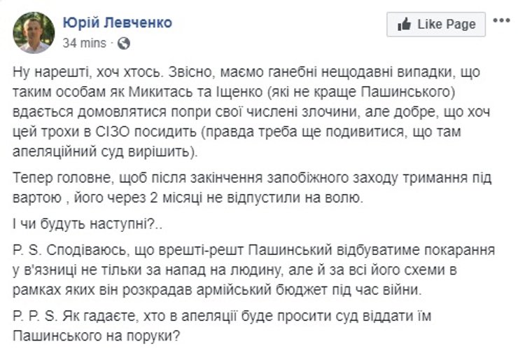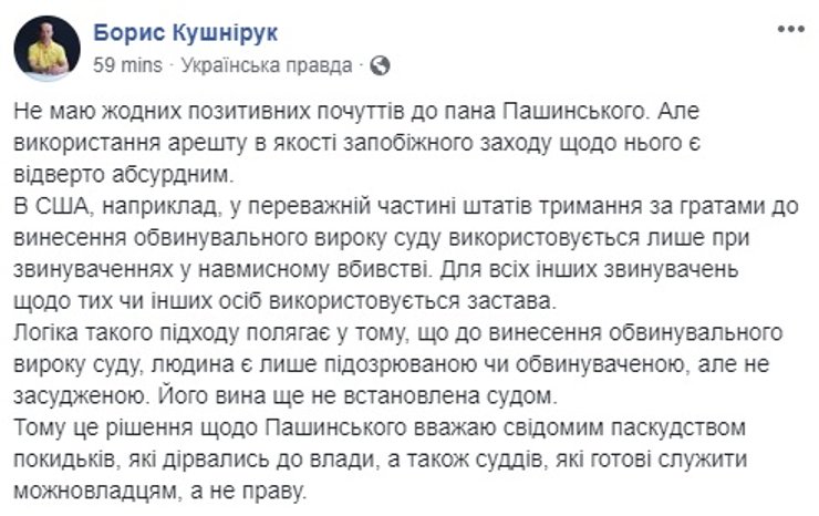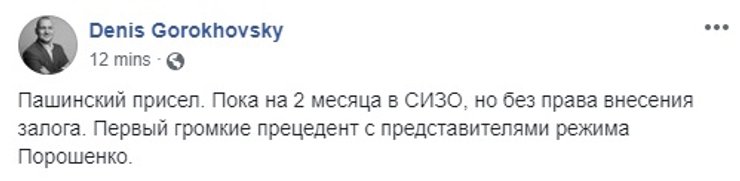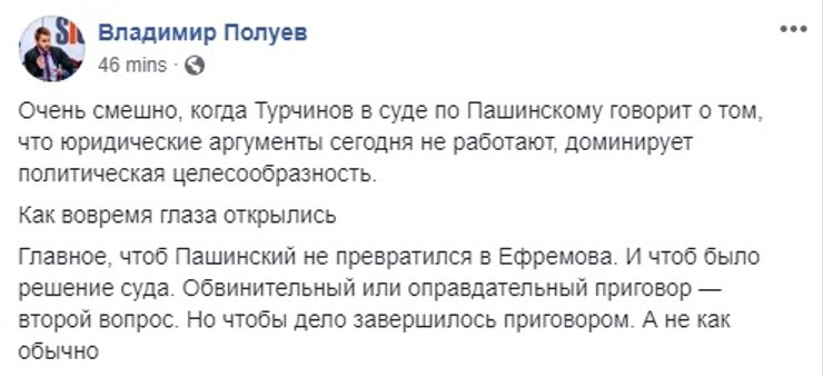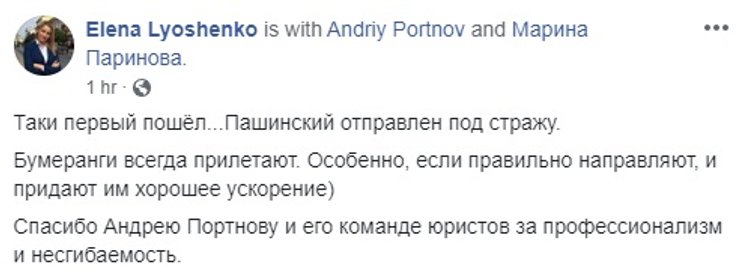 В соцсетях суд над Пашинским обсуждают живо. Одним из первых отписался с победным постом сам Андрей Портнов сотоварищи.