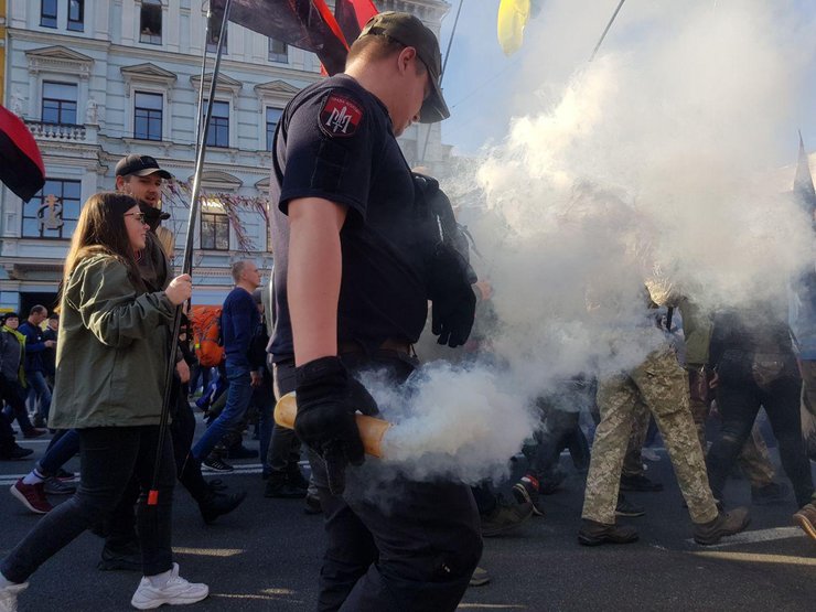 На Крещатике участники марша зажгли дымовые шашки. По предварительным данным, в акции участвуют около 5 тыс. человек.