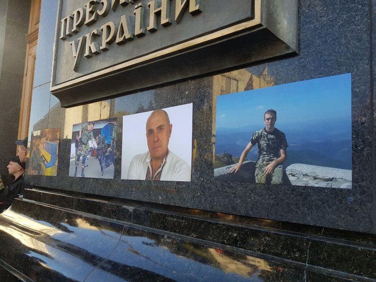 Участники марша добрались до Офиса президента и наклеили на здание портреты погибших украинских бойцов.
