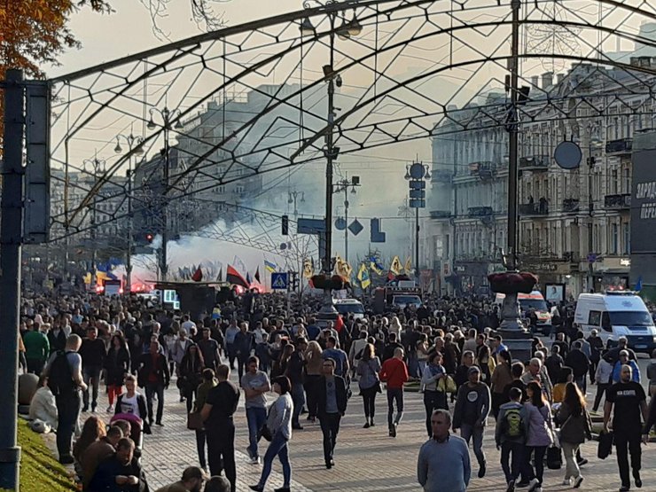 Отметим, что люди, находившиеся в колонне, начали кричать, чтобы активисты погасили шашки. На фоне этого, произошли одиночные стычки между представителями "Нацкорпуса" и другими гражданами, которые решили присоединиться к маршу.