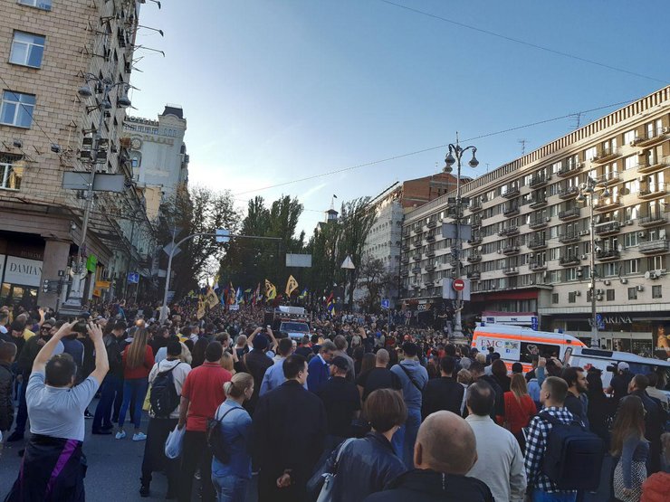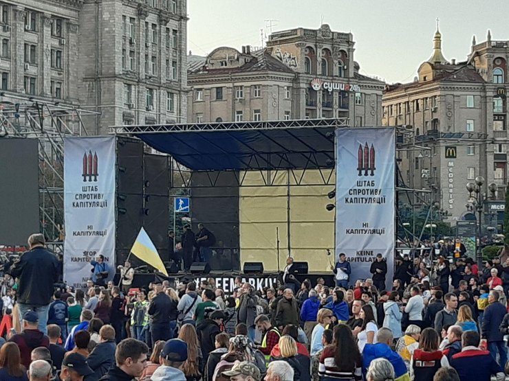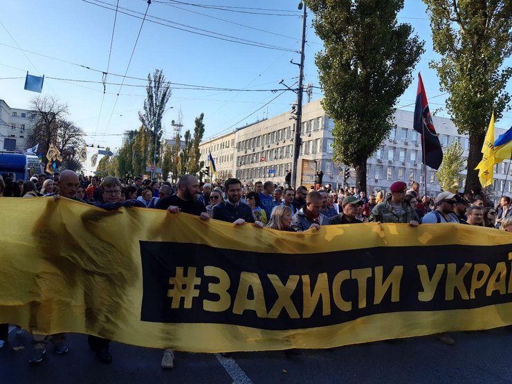 - А в 16:00 начнется "Марш сопротивления капитуляции". Аваков, Баканов и Данилов призвали участников протестных акций не поддаваться на провокации и манипуляции.