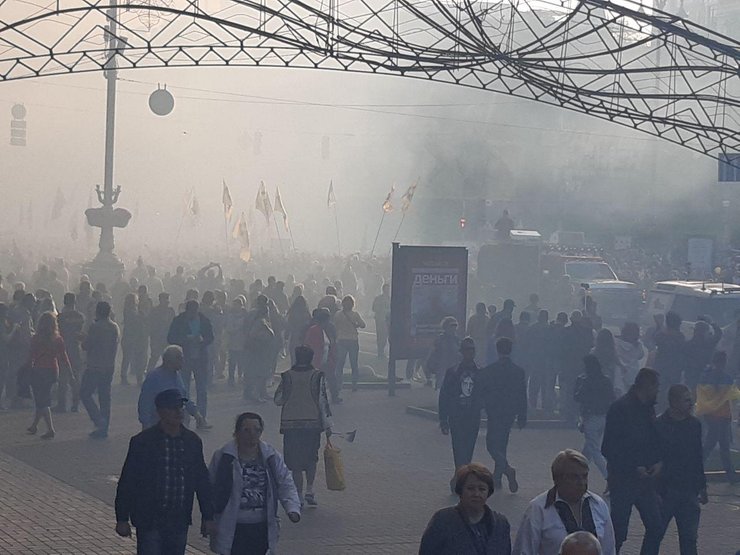 На Майдане представители "Нацкорпуса" зажгли от 4 до 5 дымовых шашек, после чего Майдан снова окутал сильный дым.