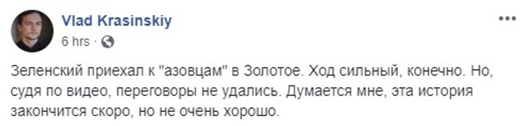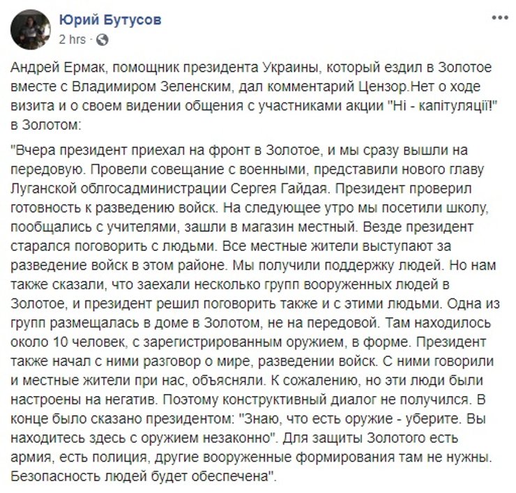 При этом Андрей Ермак, помощник президента Украины, который ездил в Золотое вместе с Владимиром Зеленским уже заявил, что "эти люди были настроены на негатив. Поэтому конструктивный диалог не получился".