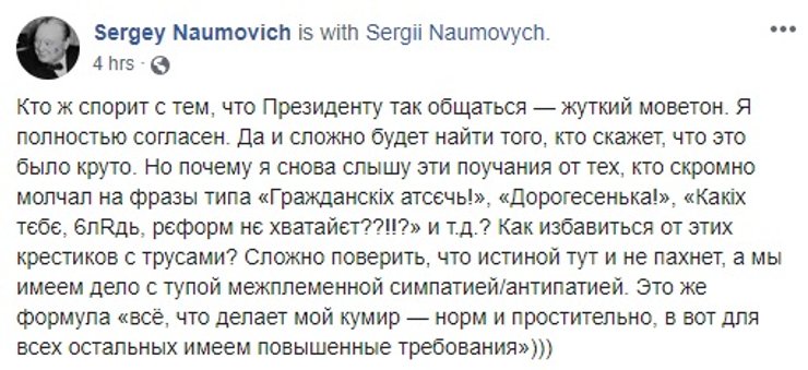 Впрочем, часть пользователей все-таки попытались сконцентрироваться не на риторике, которая и правда была резковата, а на сути происходящего и на том, что тот пытался донести.