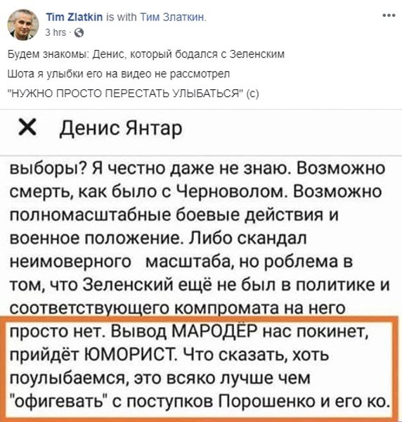 Тем временем в соцсетях принялись обсуждать ситуацию. В фокусе, как это обычно бывает, оказалась риторика и "картинка". Тем более, что видео беседы президента появилось весьма оперативно. Также выяснилось, что оппонентом Зеленского был некий Денис Янтар, избиратель и сторонник нового президента.