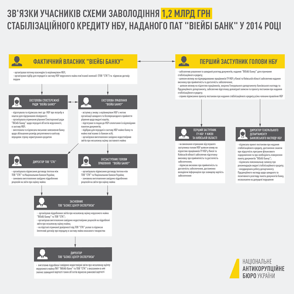 В октябре 2014 года VAB банк, отнесенный к категории проблемных банков, обратился к НБУ с ходатайством предоставить ему стабилизационный кредит под залог недвижимого имущества. По версии следствия, необходимых для этого документов предоставлено не было, однако правление НБУ все равно согласилось помочь банку.