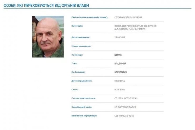 Датой исчезновения Цемаха в органах указали 23 сентября 2019 года.