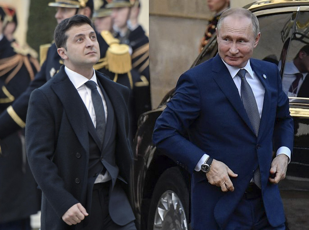 Во время переговоров Зеленский сидел напротив Путина, Макрон - напротив Меркель.