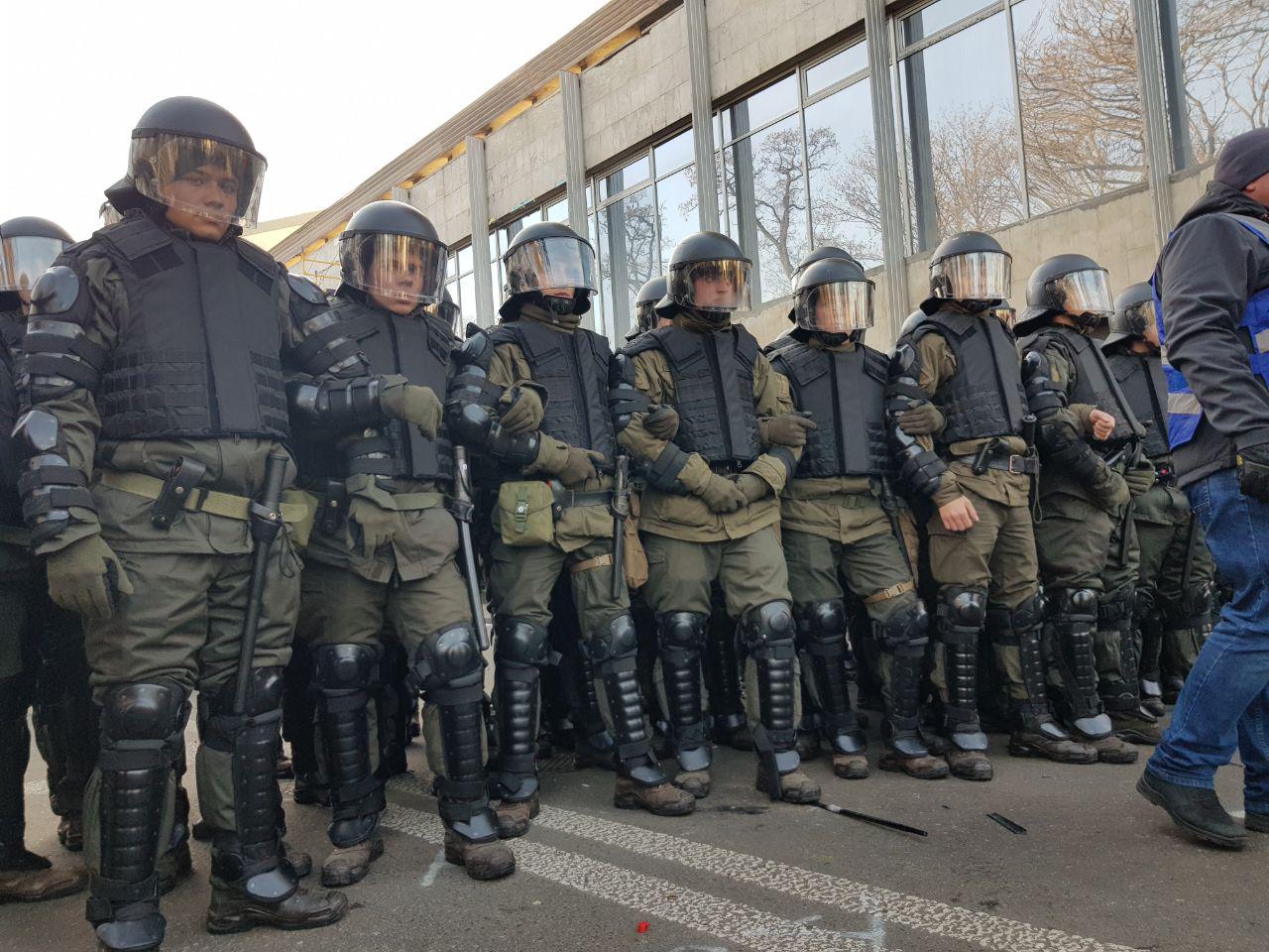 После этого произошли стычки. Полицейских облили зеленкой и били палками. Обе стороны применили слезоточивый газ.