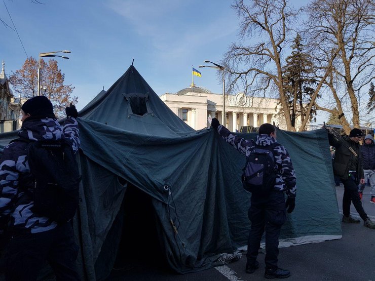 В центре столицы возле гостиницы "Киев" произошли столкновения между полицией и представителями "Нацкорпуса", которые хотели принести под Раду палатки.
