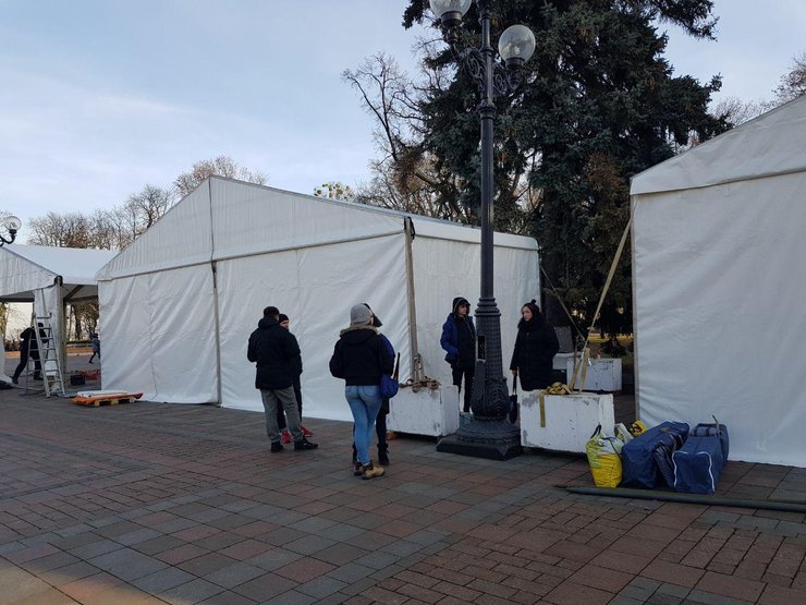В итоге две палатки установили на проезжей части возле гостиницы "Киев".