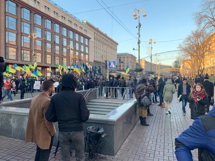 Митингующие против внедрения рынка земли перекрыли проезжую часть Крещатика. Активисты от Национального корпуса и ассоциации фермеров и приватных землевладельцев Украины расположились возле ЦУМа. Об этом сообщает Страна.юа.