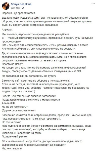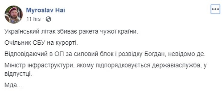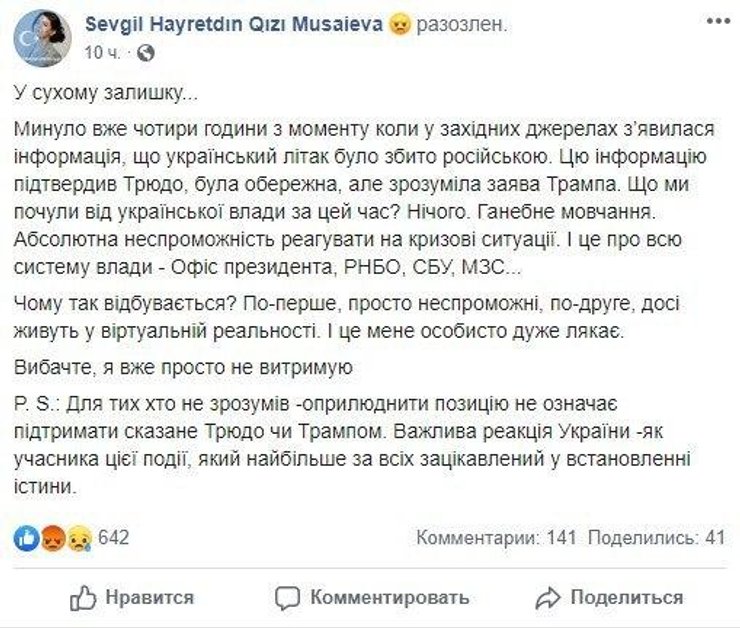 Отметим, что порция критики в связи с катастрофой досталась и Верховной Раде, поскольку депутаты сейчас на каникулах, а профильные в данном случае Комитеты по нацбезопасности и иностранным делам не собираются на заседания, чтобы обсудить трагедию.