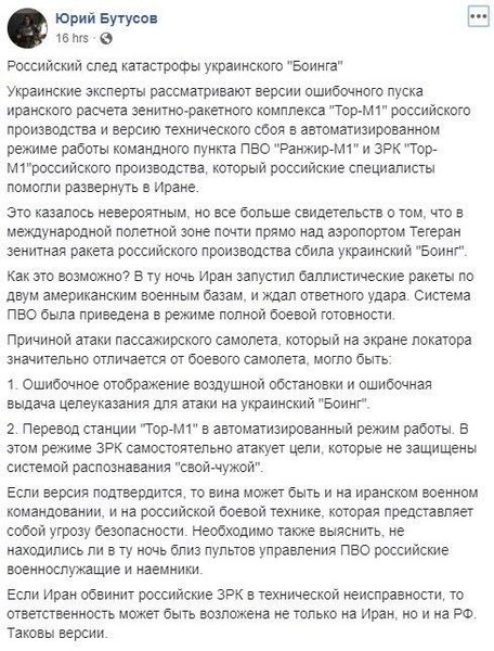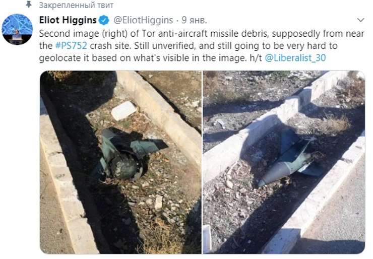 Отметим, что версия о попадании ракеты звучала с первого дня трагедии. В соцсетях получили распростарнение фотографии ракеты ЗРК "Тор" российского производства (на вооружении Ирана состоит 29 таких комплексов), опубликованные пользователями. Однако, как отметили в Bellingcat, подтвердить их подлинность очень сложно.