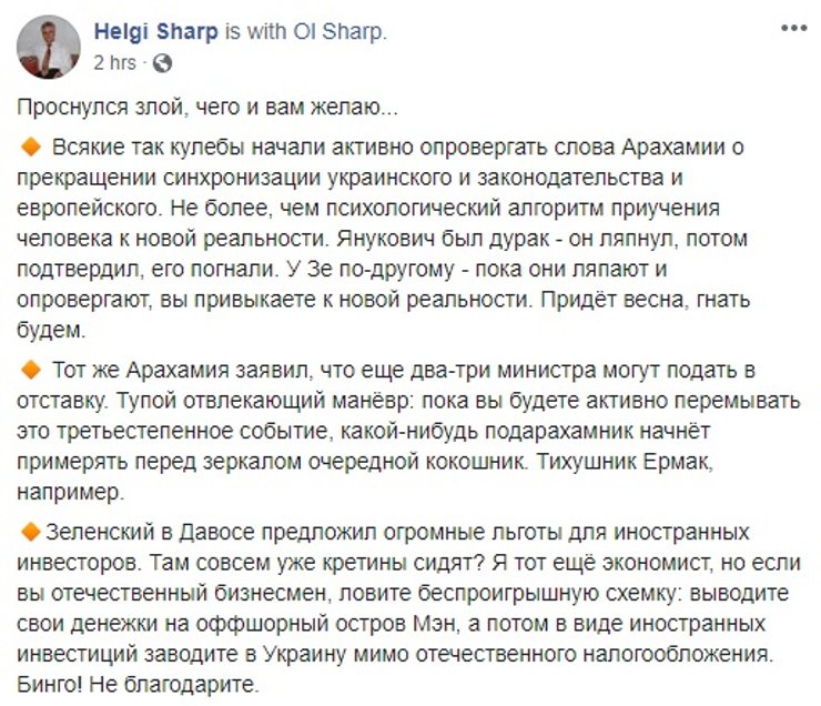 Однако заманчивые призывы и обещания команды Зеленского не все встретили с одобрением. Некоторым показалось подозрительным: если это опытный инвестор, то зачем его водить за руку, а если он не таков, то зачем он нужен? И потенциальному инвестору наверняка хотелось бы больше конкретики.