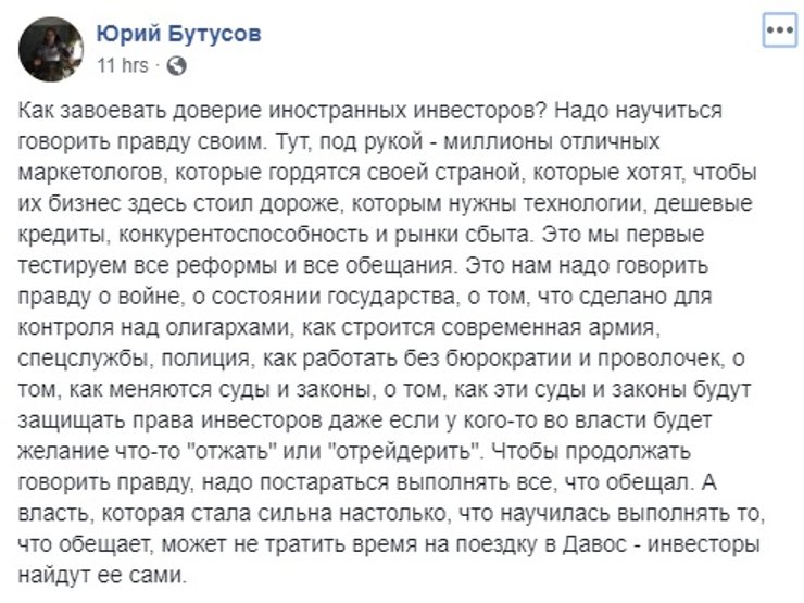 Отдельно обратили внимание пользователи на то, что призывы президента в первую очередь звучат в адрес международных инвесторов, а об отечественных он забывает. И главное - это не предоставлять преференции отдельным компаниям, а проводить реформы, которые в целом улучшат инвест-климат в стране.