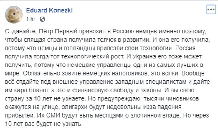 Многие пользователи увидели в заявлении Гончарука признание собственной беспомощности и посоветовали заменить немецкими специалистами всех топ-чиновников.