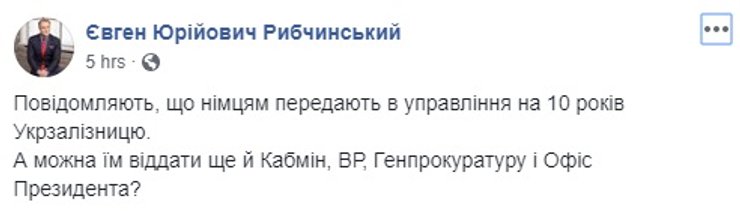 Заявление о передаче стратегического предприятия в управление иностранной компании вызвало немедленную реакцию в соцсетях, у многих пользователей резко негативную. Ведь Укрзализныця перевозит не только пассажиров и грузы, но также танки и солдат на фронт. И с таким успехом вскоре всю страну могут передать под внешнее управление.