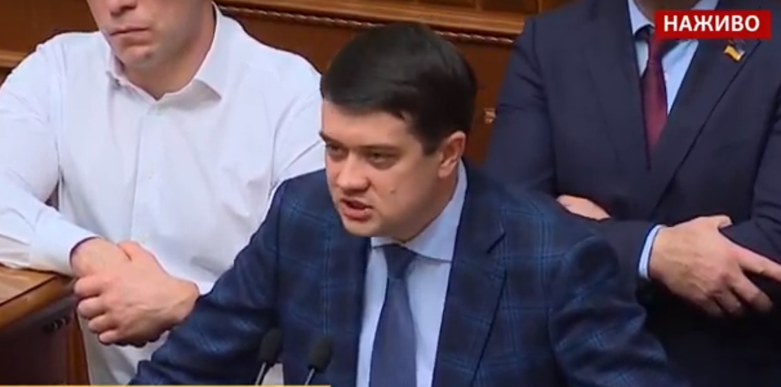 "Я понимаю, что сегодня нас много кто толкает на то, чтобы в Верховной Раде снова была драка, кровь, и чтобы не только в Верховной Раде", – заявил Разумков.