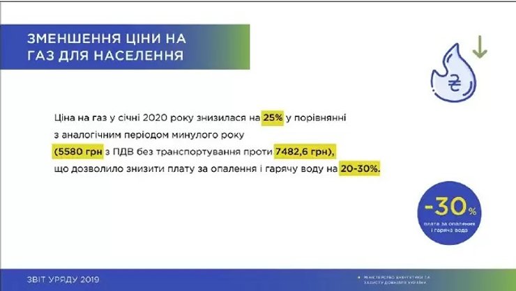 В списке 100 достижений Кабмина, в частности, были запуск программы "Доступные кредиты 5-7-9%", анбадлинг Нафтогаза, уменьшение цены на газ для населения и электронная перепись населения.