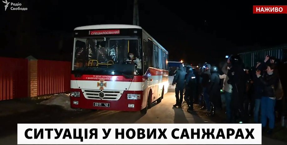 - При въезде в Новые Санжары со вчерашнего вечера вышли на акцию протеста местные жители. До официального сообщения МВД аналогичная информация распространялась в соцсетях. Протестующие утверждают, что санаторий не подходит под карантин.