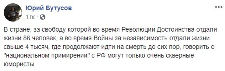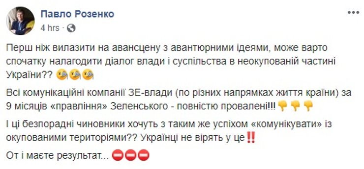 "Зеленский и военные должны защищать эту территорию, а не путем компромиссов или консенсусов. Много у вас предложений, но я не вижу, как вы собираетесь искать консенсус с военными, которые похоронили своих друзей, родителей, сыновей? Территорию Украины надо отвоевывать", — выразил свои претензии один из критиков.
