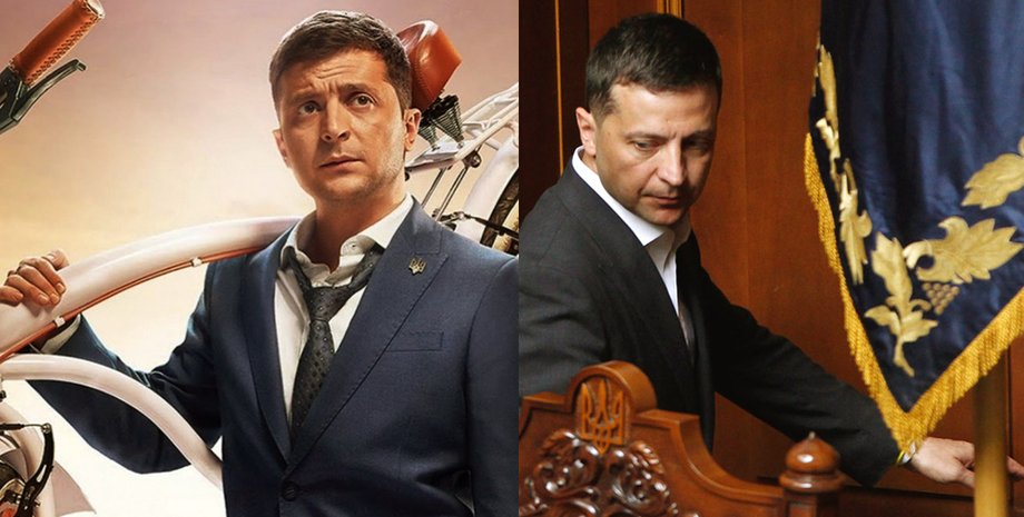 21 апреля 2019 года в Украине случилось необычное для политики. Граждане страны невероятными 73% поддержали во втором туре комика, художественного руководителя студии «Квартал 95» Владимира Зеленского. Так актер, сыгравший в комедийном сериале президента Василия Голобородько сам не менее чудесным образом стал президентом. Фокус вместе с экспертами сравнил достижения президента Владимира Зеленского и его экранного двойника Василия Голобородько, использовав события первого сезона сериала.