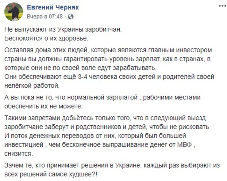Многие отметили, что подобные заявления звучат нелогично. Ведь те самые заробитчане обычно везут заработанные за границей деньги домой, в Украину, где их и тратят, а практика "железного занавеса" приведет к тому, что этих денег больше не будет.