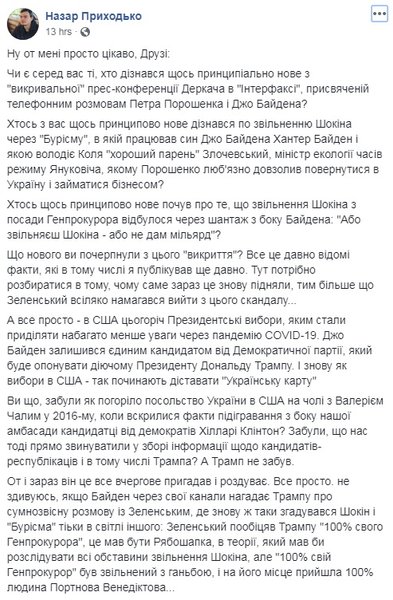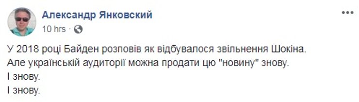 Напомним, сам Шокин неоднократно заявлял, что за его увольнением стоит Байден и в январе 2020 года даже потребовал от ГБР завести на него дело за вмешательство в дела Украины.