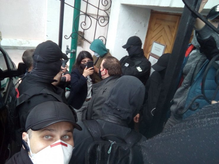 Сотрудники спецназа пробыли там около двух часов, не пропуская в здание музея его сотрудников и журналистов. Самого директора, по его словам, блокировали в кабинете. "Какое судебное решение? Выломали двери, запрещали звонить по телефону. Не объясняли ничего. Я пытался звонить владельцу коллекции для разрешения на досмотр коллекции. Запрещали. Объясняли, что осмотрят помещение в соответствии своим должностным обязанностям, что они имеют право общественные помещения осматривать. Это помещение коммунальной собственности. Я был там, но двери выломали в экспозицию. Возможно, они выносят работы где-то. Никто не показывал решения суда. Я был в кабинете, они сами проломились, даже не предупредили, что ломают дверь", — заявил Петр Гончар, который передал в полицию заявление о сломанной двери.
