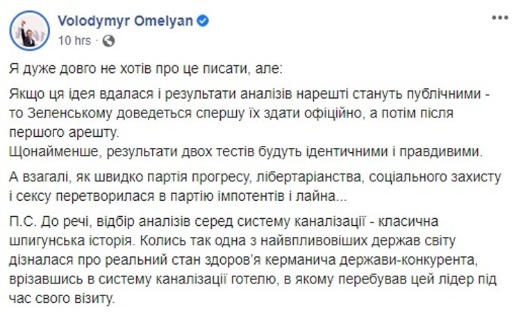 Спустя год после выборов президента история со сдачей анализов Владимиром Зеленским получила новую жизнь. Блогер Анатолий Шарий сообщил, что его сторонники взяли у президента биоматериалы для проверки на употребление наркотиков, а сделали это тайно — в туалетной кабинке, которую перед этим посетил Зеленский.