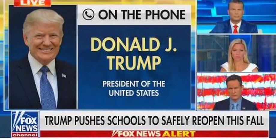 В частности Трам запостил фрагмент его интервью программе Fox & Friends телеканала Fox News, в котором заявил, что дети "почти неуязвимы" к COVID-19.