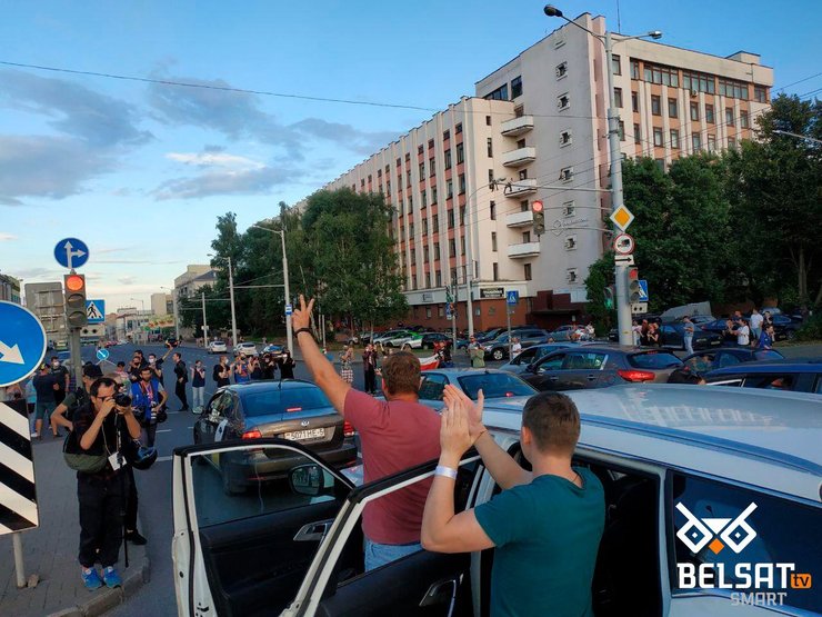 22:22 По всей стране продолжаются митинги, которым препятствуют правоохранительные органы. Телеграм-каналы пишут о Могилеве, Бресте, Светлогорске, Гродно. В Минске автомобилисты блокируют подъезды к метро Пушкинской пустыми машинами.