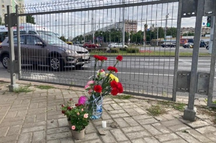 14:10 В Минске люди несут цветы к месту, где вчера погиб один из протестующих. Цветы вешают на металлический забор, отделяющий проезжую часть от пешеходной зоны. Проезжающие мимо машины сигналят, а люди на этом пятачке вскидывают руки, показывая знак "V".