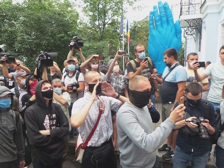 Как мы уже сообщали, сотрудники СБУ заподозрили одного из участников акции в подготовке провокации и вызвали полицию для проверки документов. В итоге произошла стычка с правоохранителями. По словам полиции, задержанный активист хотел бросить яйцо в здание посольства.