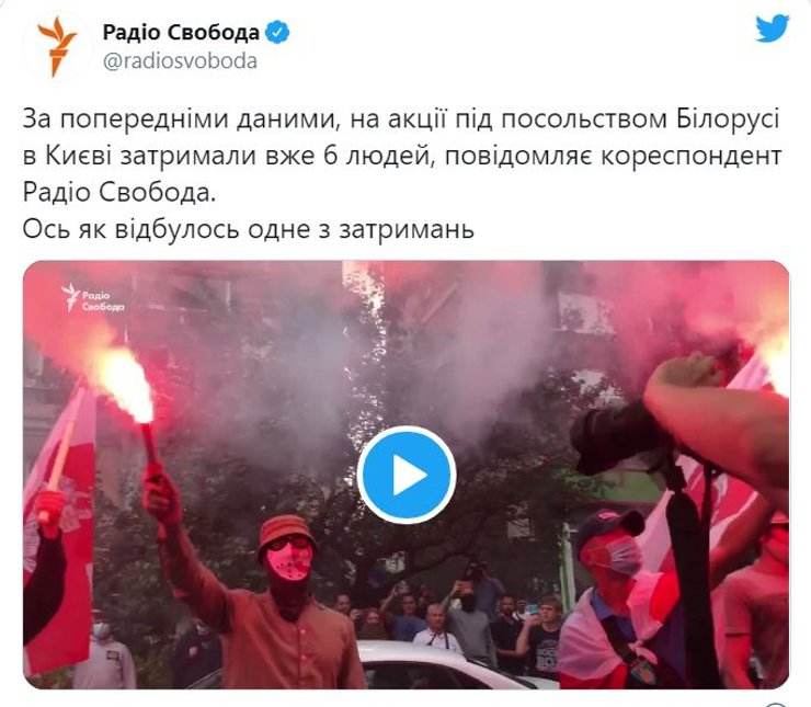 Сегодня 10 августа, у здания посольства Беларуси в Киеве проходит акция в поддержку честных выборов в Беларуси. Собравшиеся скандируют "Жыве Беларусь" и жгут файеры. Среди прочих, под консульство пришли недовольные граждане Беларуси, которые не смогли проголосовать 9 августа.