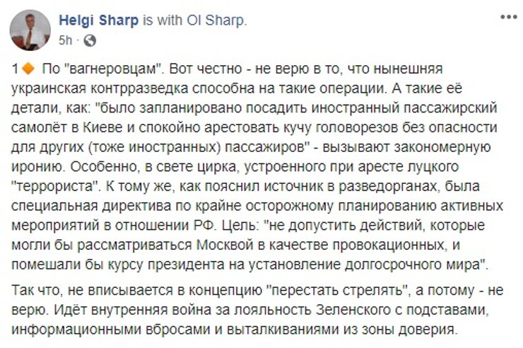 А уже через два дня, 5 августа – без каких-либо предупреждений и обсуждений президент Зеленский издает указ об увольнении Бурбы и назначении нового начальника ГУР МО Кирилла Буданова. Расследование провала дорогостоящей операции по захвату террористов так и не было начато. Президент Зеленский проводит переговоры с Лукашенко о выдаче террористов, по крайне мере тех девяти, которые являются гражданами Украины и используют украинские паспорта. Но, как мы уже знаем, 14 августа все "вагнеровцы" оказались в РФ и даже дали интервью.