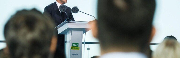 "Мы не научились у старых политиков врать и воровать", – звучат в микрофон слова Корниенко. Он традиционно перед выборами сравнивает старых политиков и новых, а еще жалуется на информационные атаки и распространение фейков.