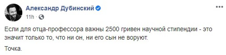 Но нашлись и те, кто поддержал президента и его отца. В частности, на защиту пожизненной стипендии выступил депутат от Слуги народа Александр Дубинский.