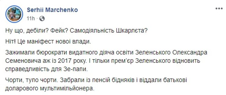 Но ход скандалу уже был дан. Сначала выдвигались версии, что это была инициатива самого Зеленского-младшего, но, если судить по пояснительной записке, отличился все же Сергей Шкарлет.