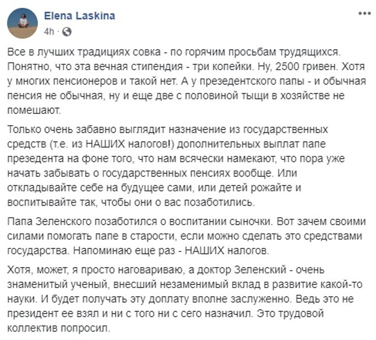 Что об инициативе "трудового коллектива" и решении отца не отказываться от пожизненной пенсии думает сам президент Владимир Зеленский – неизвестно. Он комментариев не давал.