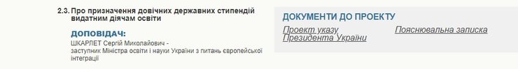 2 сентября выяснилось, что Кабинет министров по инициативе и.о. министра образования и науки Сергея Шкарлета должен был рассмотреть проект, которым выдающимся деятелям образования должны были назначить пожизненную стипендию. В перечне таких деятелей был и отец Зеленского.