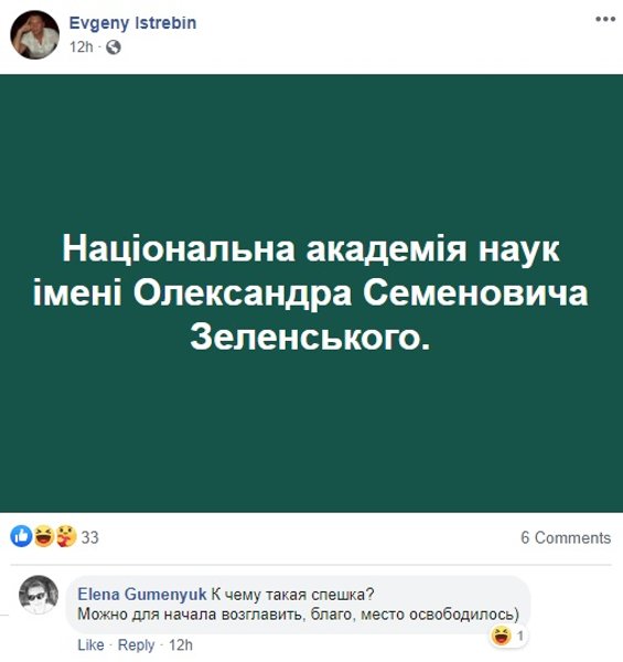 Нашлось место и для шуток. Особенно популярно мнение о том, что одной пожизненной пенсией можно не ограничиться, ведь в Академии наук Украины пустует целое свободное кресло.