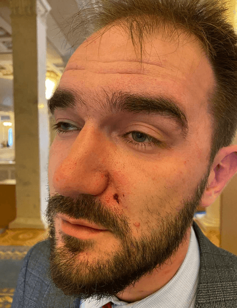 "Напал как преступник, как бандит, как невоспитанный человек", – сказал Юрченко. Лерос нанес ему удар по голове. Пострадавший говорит, что вызвал правоохранителей и скорую помощь, чтобы они зафиксировали случившееся.