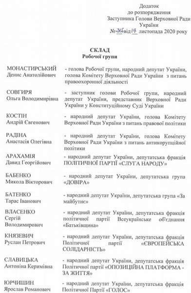 Создать такую группу предложил спикер Дмитрий Разумков 16 ноября в ходе заседания согласительного совета ВР. При этом он заверил, что его законопроект № 4304 остается актуальным.