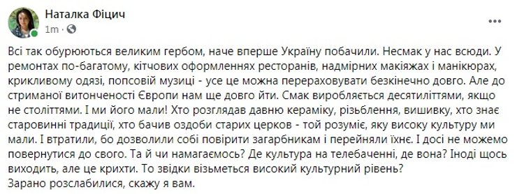 Впрочем, критики считают, что подобный выбор был вполне логичен. Пристрастие украинцев к аляповатому и несколько мещанскому стилю, с позолотой, вензелями и "шароварщиной" – неискоренимо. И потому вопросов, почему "авторитетное жюри" выбрало самый предсказуемый вариант, возникать не должно.
