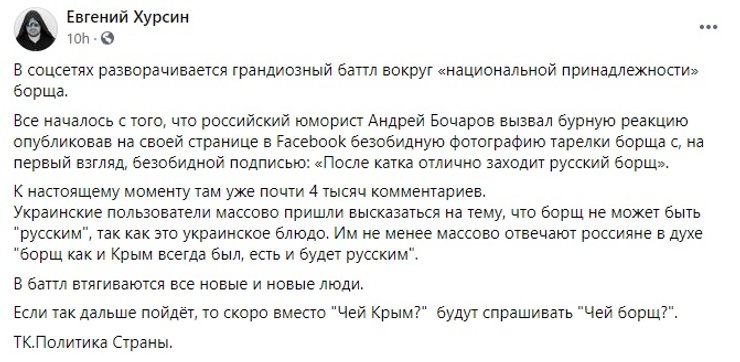 Чей борщ? В соцсетях разгорелся спор, является ли борщ украинским