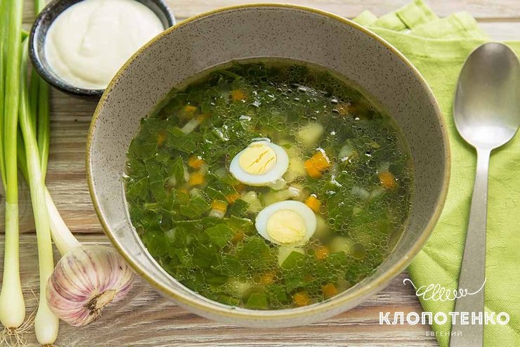 Зеленый борщ с щавелем