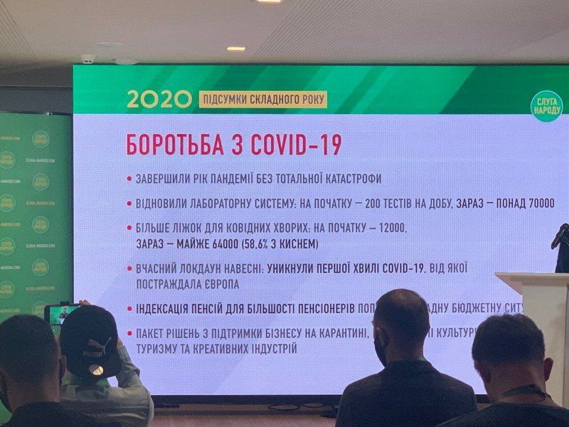 Отчитываясь о проделанной работе, в свои победы "Слуги народа" записали то, что завершен год пандемии без тотальной катастрофы, возобновили лабораторную систему и увеличили количество коек для больных COVID-19.